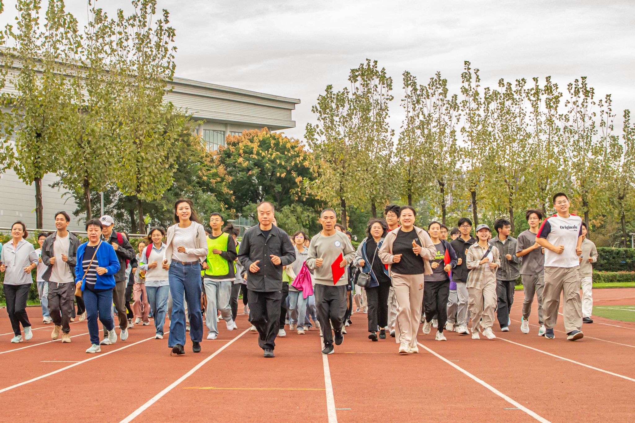 随着周院长宣布“化学学院趣味嘉年华暨育人成果风采展正式开幕”,全场掌声与欢呼声瞬间沸腾。紧接着,在体育学院同学的带领下,全体师生开启了绕场慢跑环节。大家卸下拘谨,迈着轻快的步伐沿着跑道前行,清脆的笑声洒满跑道。阳光透过云层洒在每个人的脸上,整齐的脚步声与偶尔响起的欢呼声交织,成为体育场内最温暖的“青春旋律”,也为接下来的趣味运动环节预热了满满的活力。