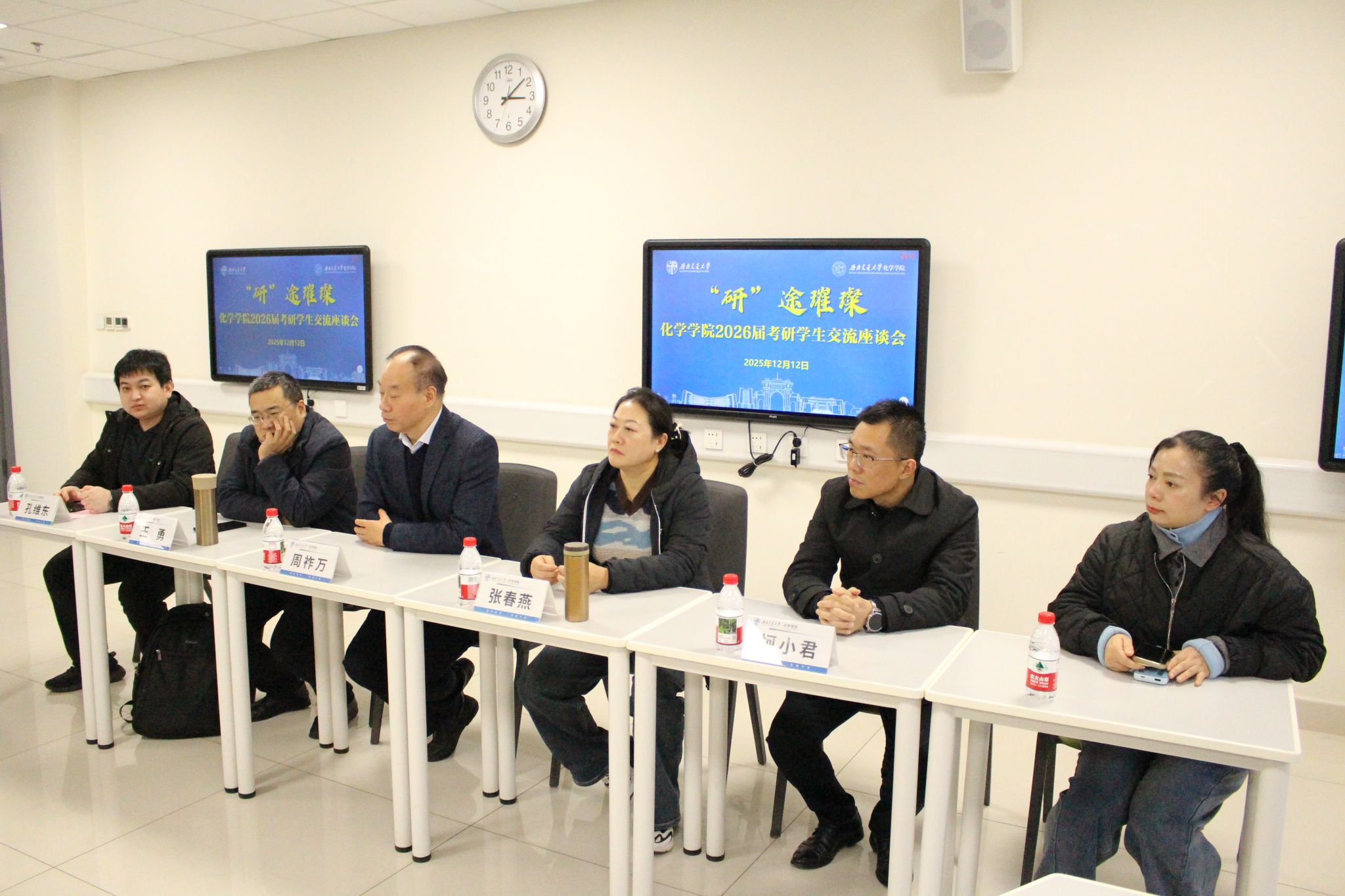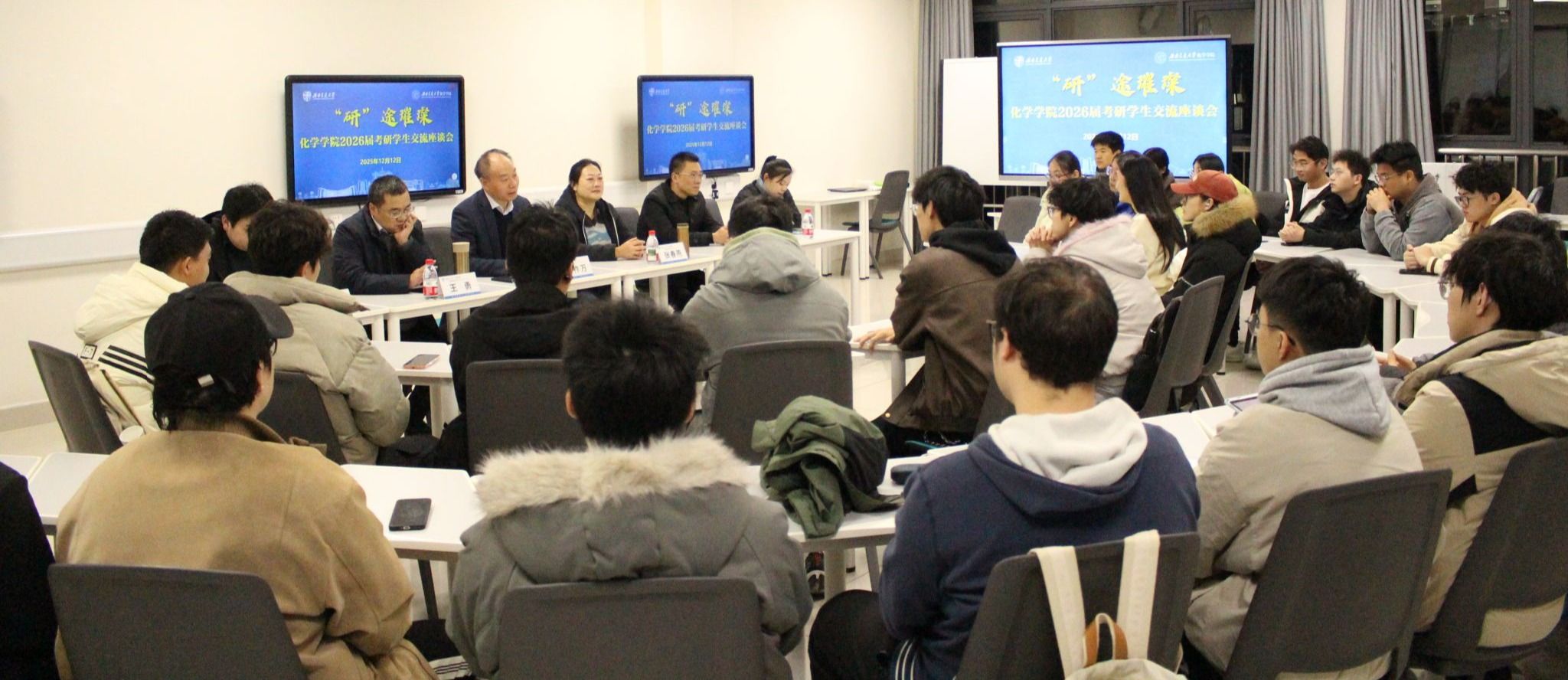 为进一步坚定2026届毕业生考研信念、缓解备考压力,切实传递学院关怀温度,12月12日晚,化学学院“研”途璀璨2026届考研学生交流座谈会顺利举行。学院党委书记张春燕、院长周祚万、党委副书记柯小君、副院长王勇,教师服务与学生支持办公室刘颖及学院全体辅导员参加活动,活动由学院学工组副组长、团委书记孔维东主持。
