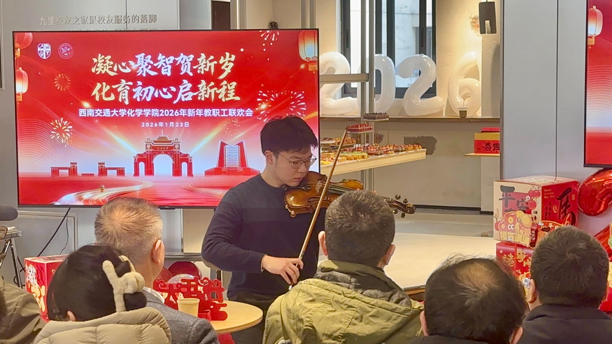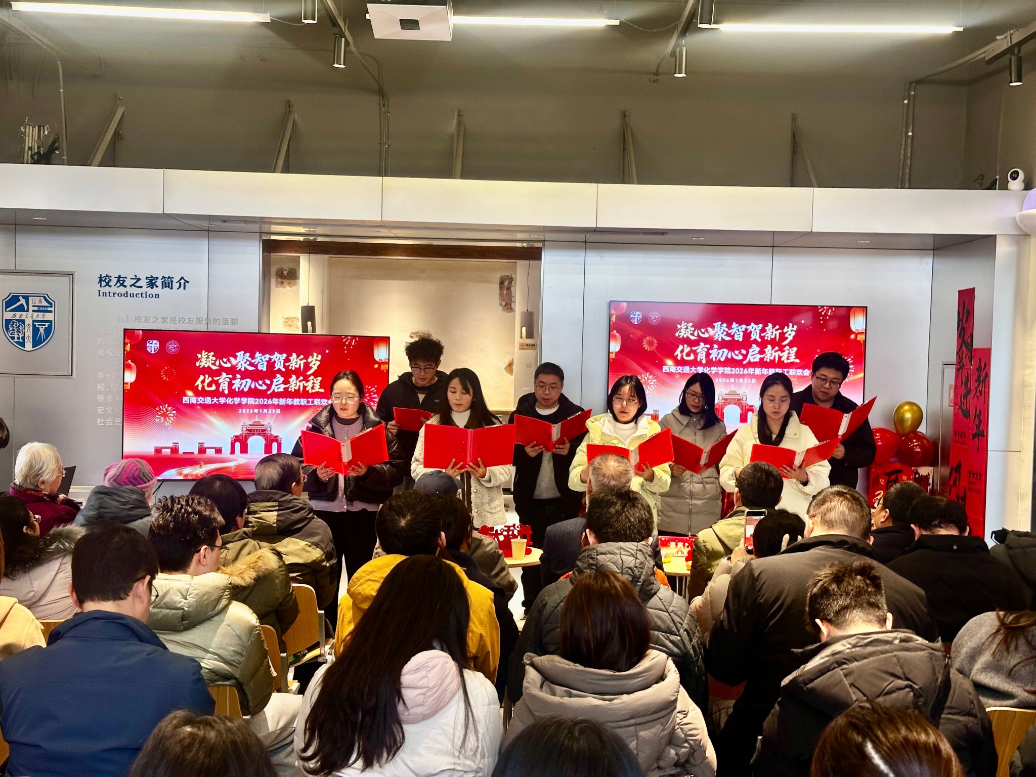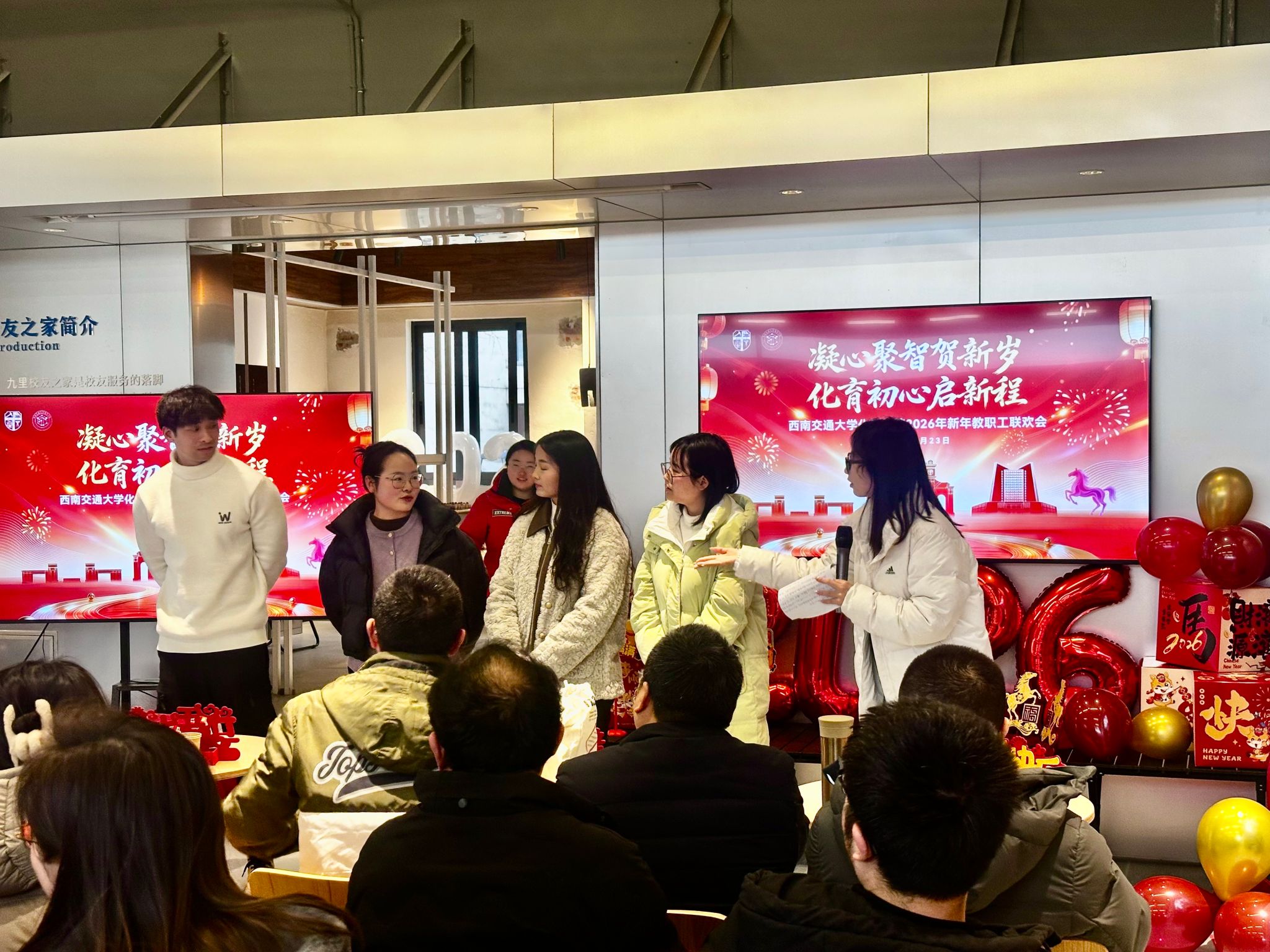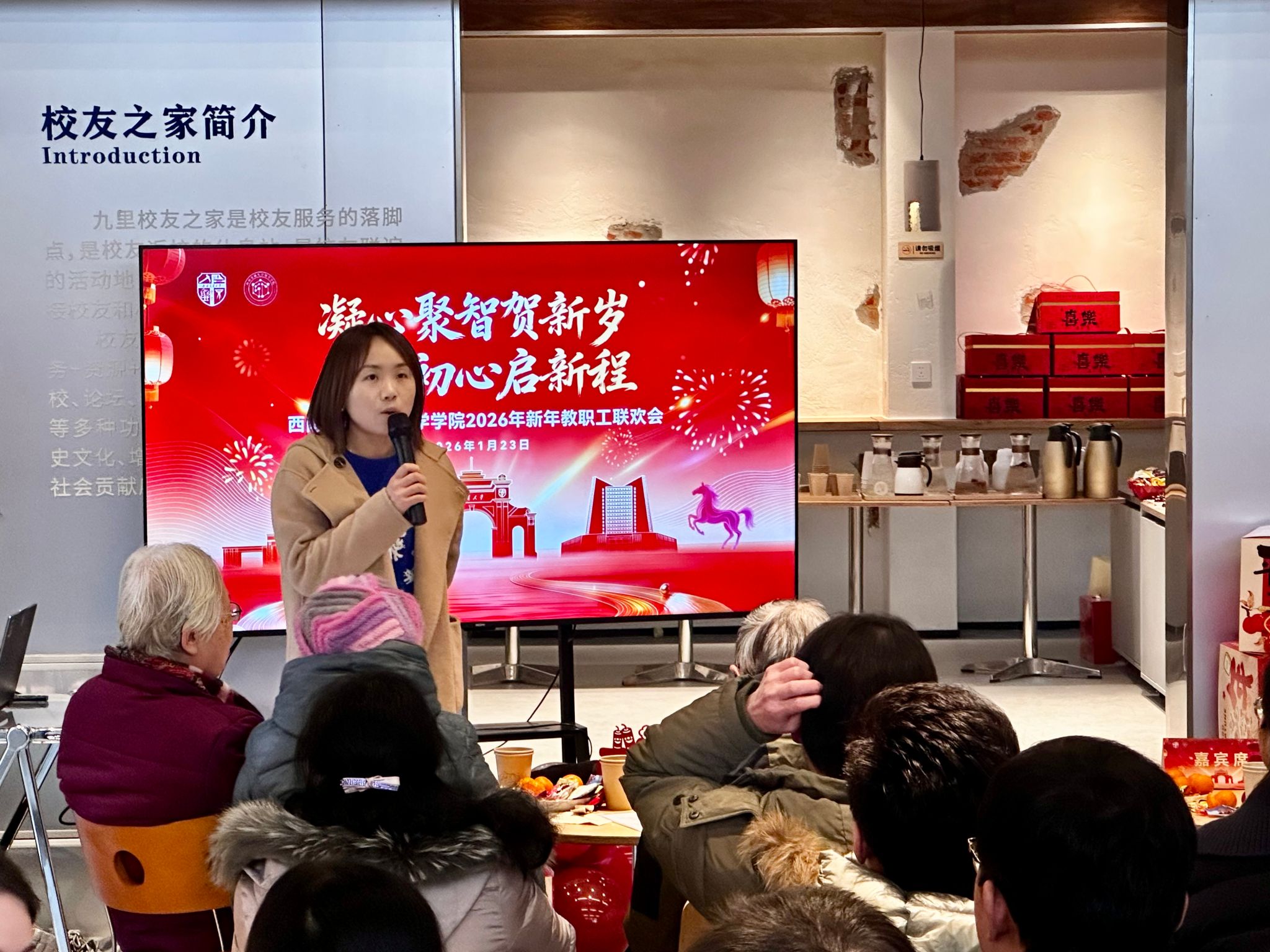 2026年1月23日下午,化学学院“凝心聚智贺新岁·化育初心启新程”新年教职工联欢会在九里校区校友之家温馨举行。学院党政领导班子、全体教职工、退休老教师代表及多位特邀嘉宾齐聚一堂,共叙师者情谊,共话学院发展,在欢声笑语中迎接马年新春的到来。