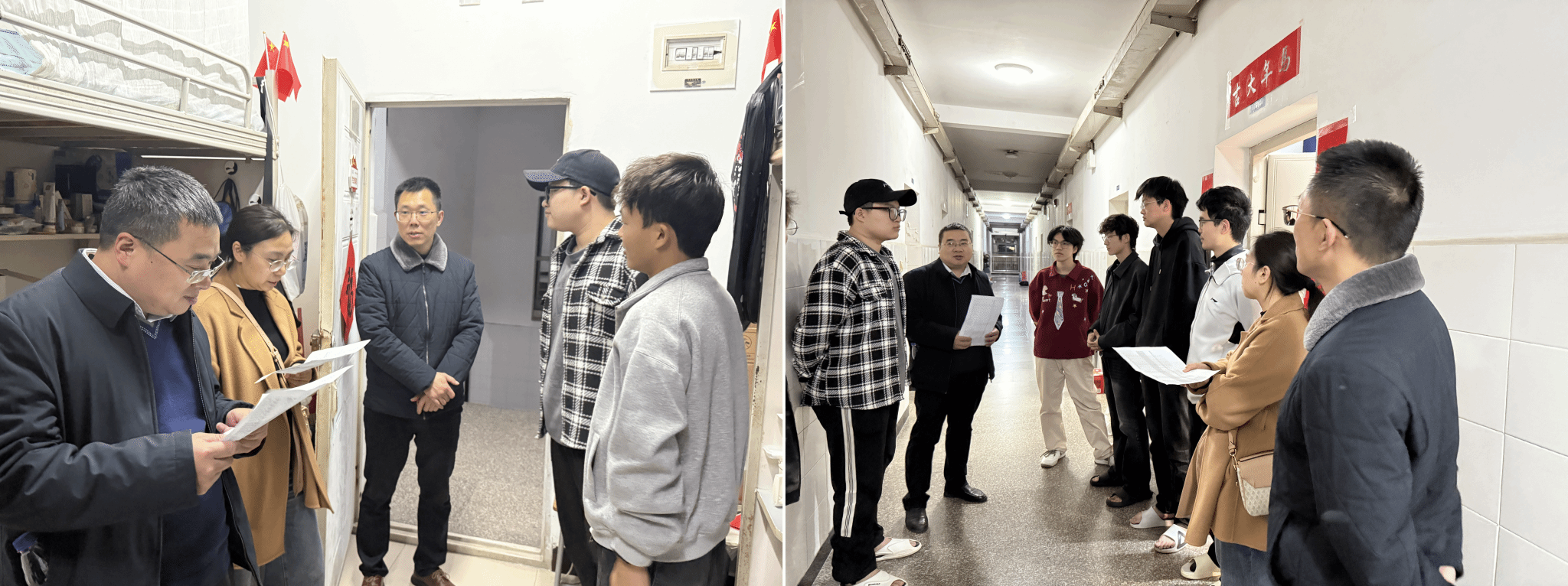 走访期间,张春燕书记、柯小君副书记重点关心学生思想动态和生活状况,查看宿舍环境,了解水电供应等保障情况,叮嘱同学们保持宿舍整洁、团结互助,共建文明和谐宿舍氛围。针对宿舍物品杂乱、用电不规范等问题,现场提醒整改,严守校园安全底线;同时密切关注学生心理健康,耐心疏导情绪,积极传递温暖。