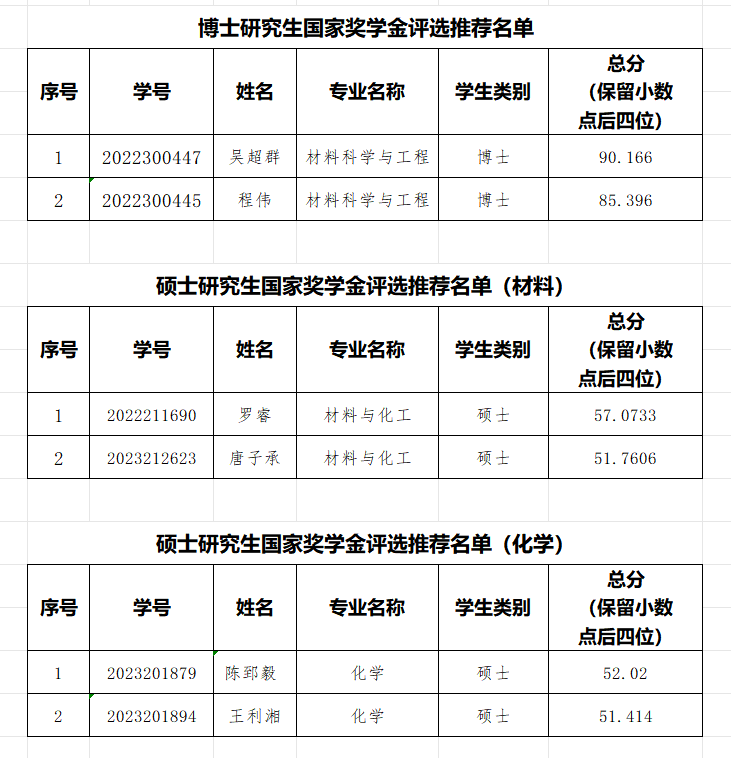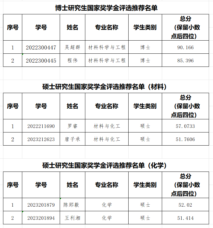2025年化学学院研究生国家奖学金、博士生扬华新秀奖学金评选经学生申请、核算分数、材料公示、现场答辩等环节,秉承“公平、公开、公正”的原则,现予以公示。
