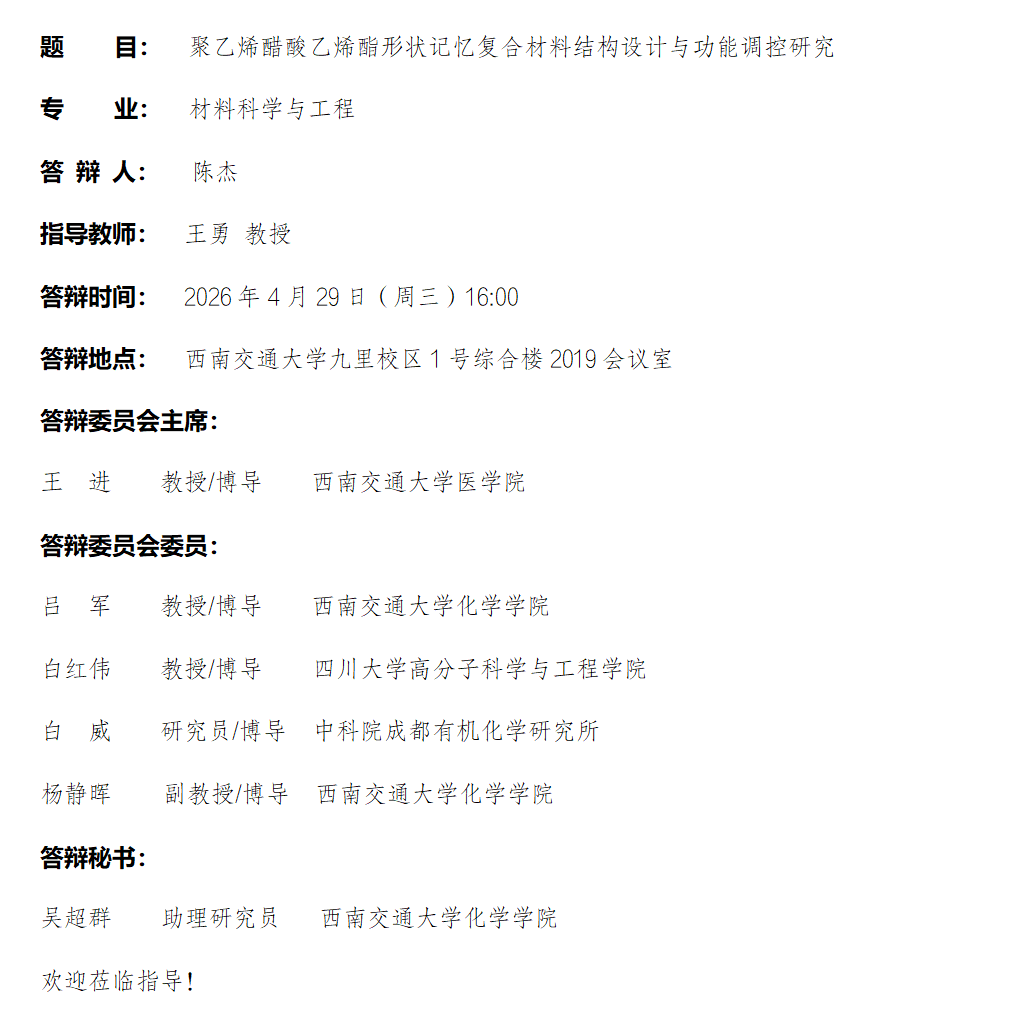 【博士答辩】王勇教授指导的博士研究生陈杰学位论文答辩公告