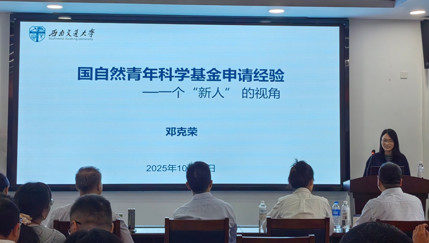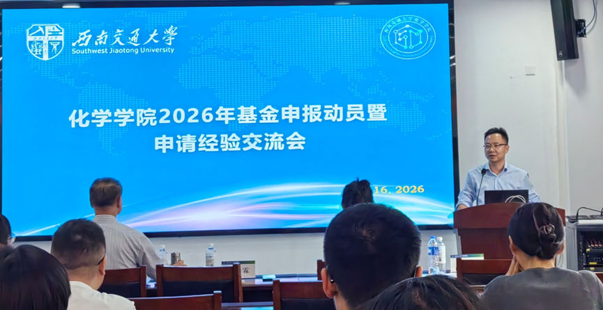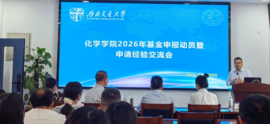 为系统部署并高效启动2026年度国家自然科学基金项目申报工作,充分调动院内教师队伍的申报积极性,切实落实有效、高效申报,2025年10月16日,于科技工业园C203会议室,化学学院隆重召开了国家自然科学基金2026年度申报动员暨申请经验交流会。西南交通大学科研院马霖副院长、张宁科长,化学学院周祚万院长、王勇、王雅雯副院长出席会议,会议由分管科研的王勇副院长主持,学院近30名教师参与会议。