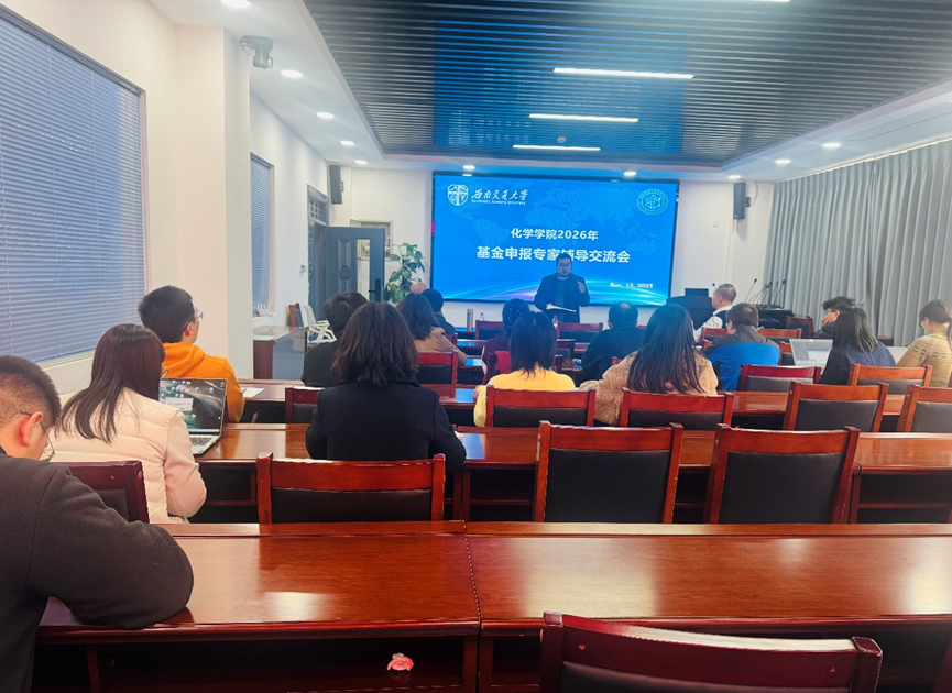 为切实做好2026年度国家自然科学基金项目申报工作,有效提升项目申报质量,2025年11月13日,我院在科技工业园C203会议室,成功举办了国家自然科学基金项目申报专家辅导讲座。本次讲座主讲人为化学学院周祚万院长和白晨曦教授,化学学院分管科研副院长王勇教授主持会议。讲座旨在通过精准指导和深入交流,助力学院教师特别是青年学者理清思路、凝练科学问题、优化申报书撰写,学院20余位教师出席会议。