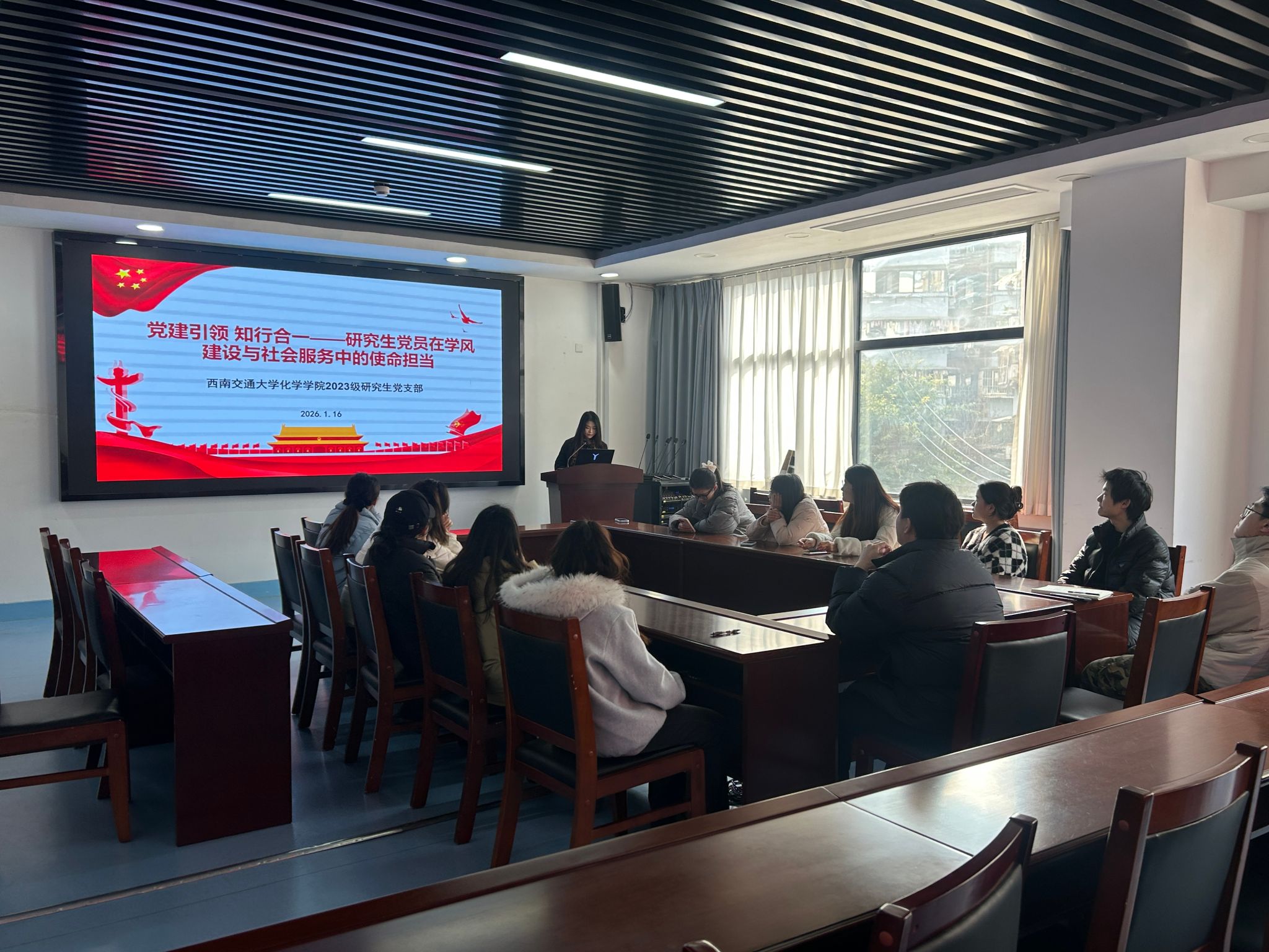 为深入贯彻党建育人理念,强化研究生党员学术道德修养与社会服务意识,西南交通大学化学学院 2023 级研究生党支部以第十三期研究生党建 “领航先锋” 工程为契机,开展 “党建引领 知行合一 —— 研究生党员在学风建设与社会服务中的使命担当” 系列活动,通过理论研讨、实践互动等多元形式,推动党建与学风建设、社会服务深度融合。