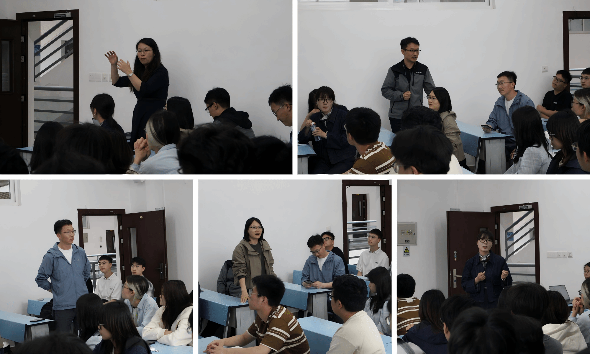 随后,团队参会教师依次分享个人研究方向、科研经历与育人心得,围绕抗菌材料、仿生纳米、绿色高分子等领域,用生动案例讲解前沿科学问题与应用前景,耐心解答同学们关于课题选择、实验技能、文献阅读等困惑,现场互动热烈。