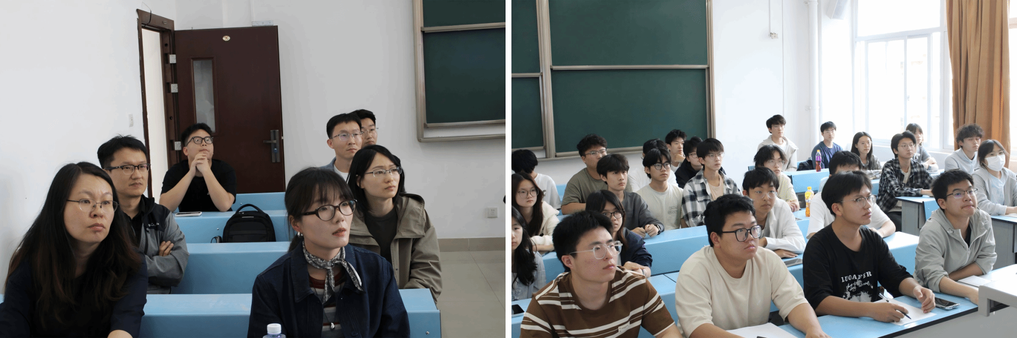 在交流研讨环节,在场本科生结合自身学习困惑与发展诉求,踊跃举手、主动提问。周教授及现场老师们逐一耐心答疑解惑,并结合国家战略需求与学科特色,细致解读本科生长远发展规划路径,讲解入门科研的核心要点,鼓励本科生既要敢于探索未知,也要脚踏实地、持之以恒,敢于尝试、不惧试错,努力成长为兼具家国情怀与创新能力的新时代化学人才。